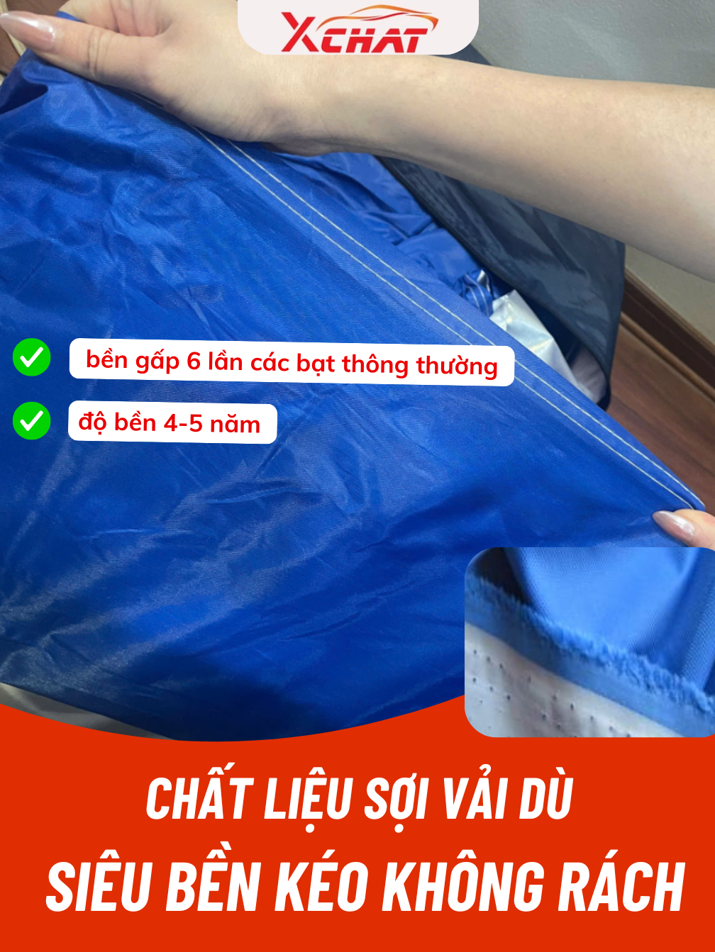 Bạt phủ ô tô XCHAT chất liệu dù gió polyester 210D chuyên dụng siêu dai, siêu nhẹ chống nắng, chống nước và bụi bẩn