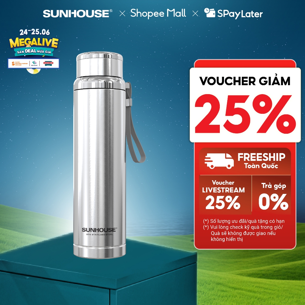 Hướng đến các sản phẩm chất lượng cao với giá thành phải chăng phù hợp đại đa số người tiêu dùng Việt, SUNHOUSE mang đến sản phẩm bình giữ nhiệt cao cấp làm từ Inox 304 - an toàn cho sức khỏe, kiểu dáng trẻ trung, hiện đại, thiết kế tiện lợi khi sử dụng.
