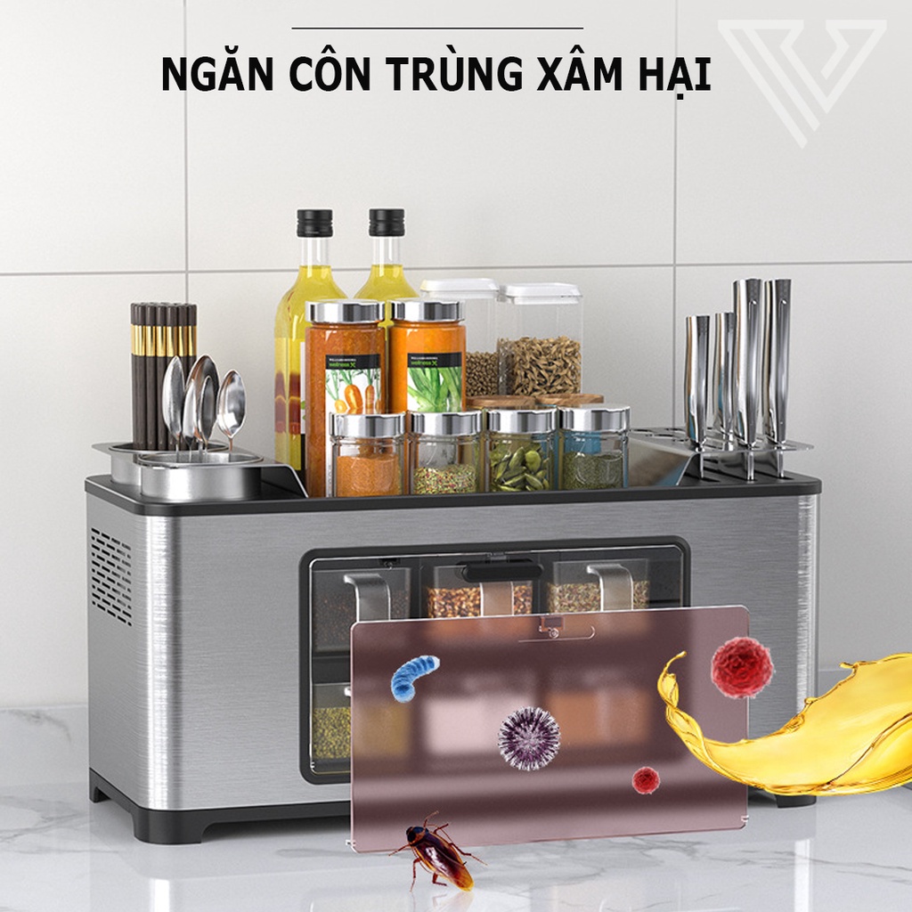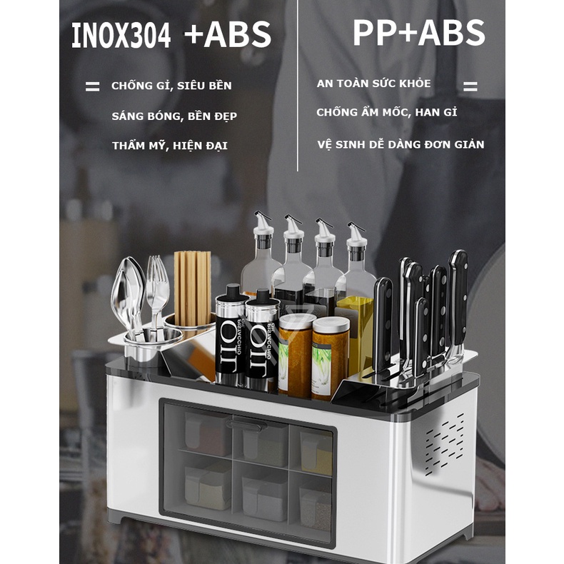Kệ Gia Vị Inox 304 Cao Cấp 6 Ô Đựng Gia Vị, Có Khay Cắm Dao Ống Đũa Đa Năng, Nhập Khẩu Chính Hãng, Bền Đẹp MKS009