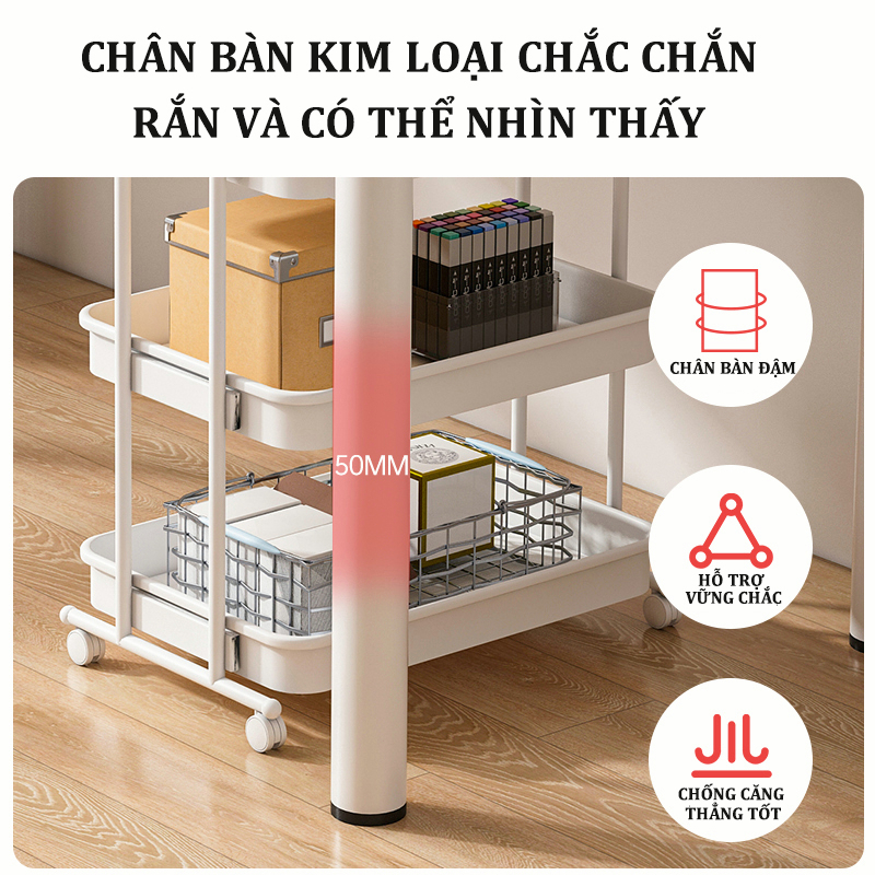 - Chất liệu: Gỗ MDF nhập khẩu phủ melamine chống trầy, chống nước (dày 15mm), khung thép chống gỉ, sơn tĩnh điện thẩm mỹ