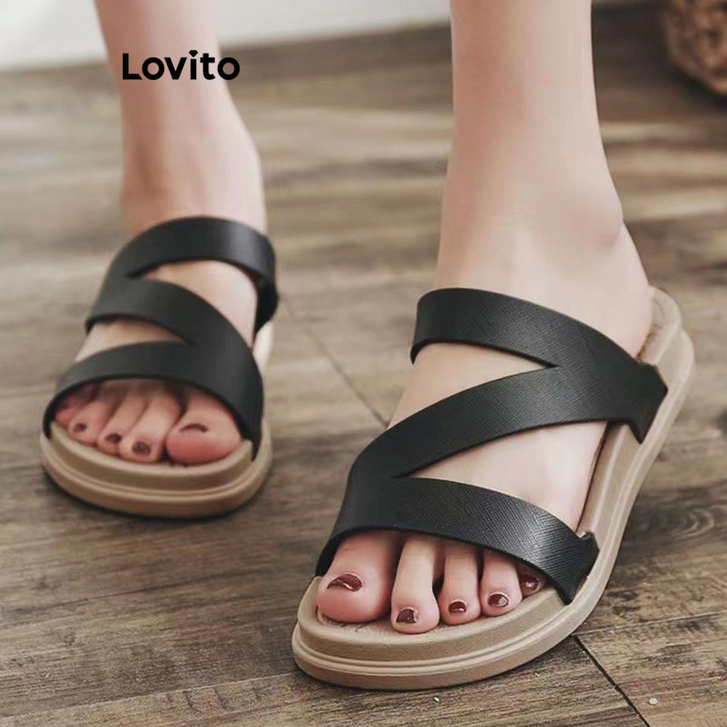 Dép Lovito đế bệt phối dây màu trơn phong cách thường ngày cho nữ LFA31014