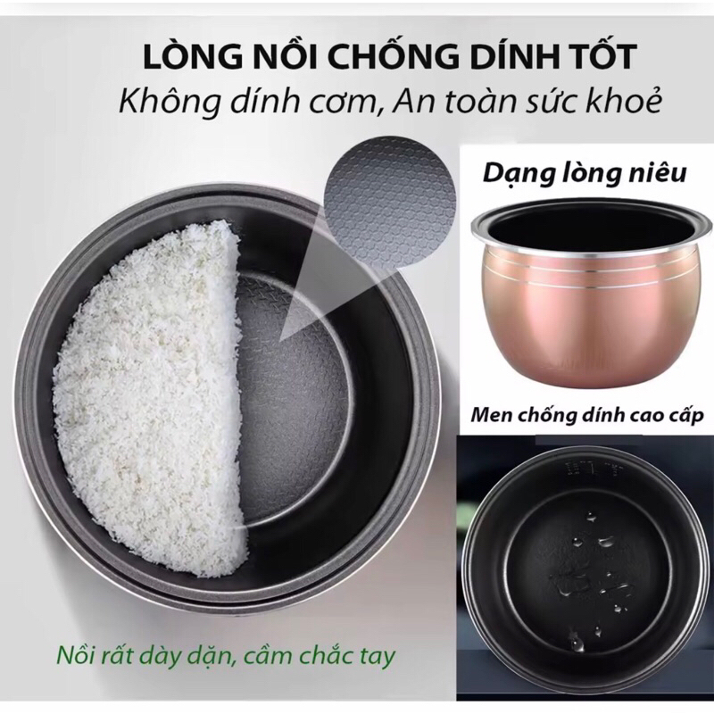 ✔️ Bên trong lòng nồi có thang đo với các vạch mức rõ ràng giúp bạn tính toán và nấu đúng lượng gạo và lượng nước cho cơm chín ngon, đúng ý.
