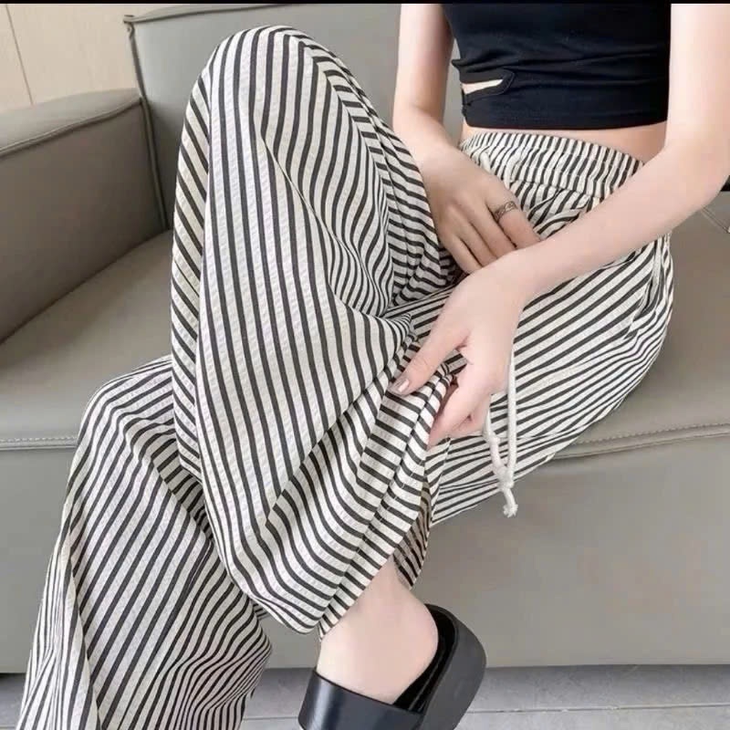 Quần Ống Rộng Kẻ Sọc Chất Liệu Mềm Mát Lên Form Xinh Tôn Dáng Mẫu Mới 2025