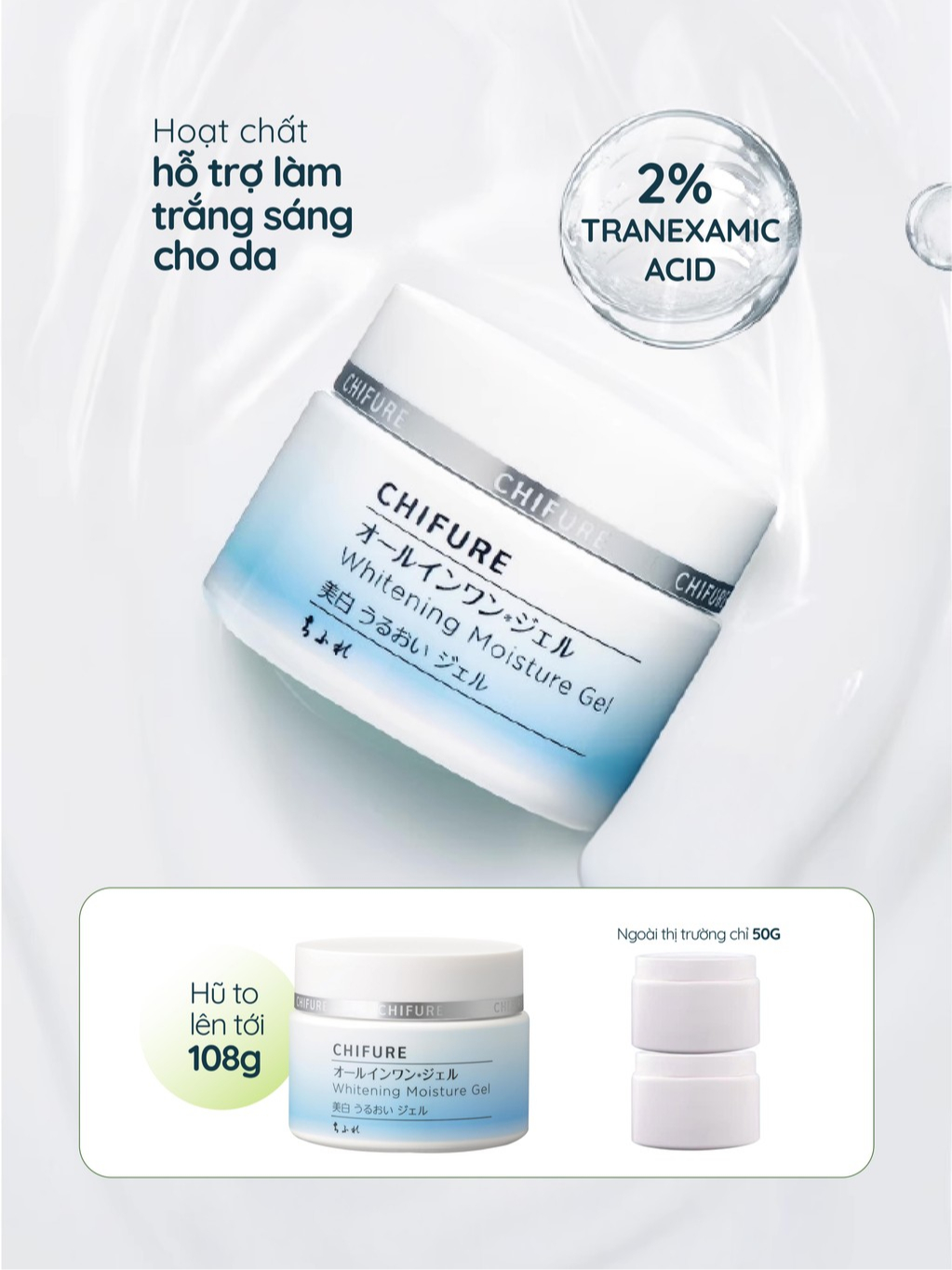 - Gel dưỡng da Chifure Whitening Moisture Gel có khả năng cấp ẩm sâu cho da, giúp da mềm mại, mịn màng và căng mọng suốt cả ngày.