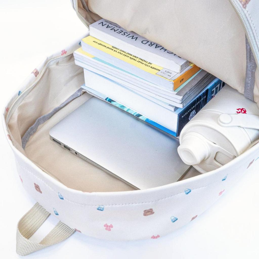 2. Công dụng của Balo GENBAG gấu nhí cute, balo thời trang nữ đi học nhiều ngăn vải dù trượt nước vừa laptop 14.5 inch - Balo gấu nhí với thiết kế rất nhiều ngăn. 1 ngăn lớn đựng thoải mái A4 (bên trong tích hợp 1 ngăn đựng laptop cùng nhiều ngăn phụ nhỏ để bút, ví, thẻ atm.v.v...khá là tiện dụng) - Mặt trước của balo gấu nhí gồm 1 ngăn nhỏ tiện lợi - 2 bên hông balo gấu nhí có 2 ngăn phụ đựng chai nước, ô - Khóa kéo loại xịn siêu bền - Quai đeo balo gấu nhí thời trang có đệm xốp êm ái, đeo cả ngày không mỏi - Balo thời trang với thiết kế trẻ trung, năng động và hiện đại. Balo gấu nhí không chỉ để đi học, đi làm, đi chơi thông thường mà nó còn như 1 món phụ kiện giúp định hình phong cách và cá tính người đeo