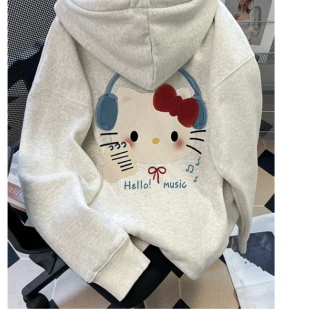 Áo hoodie nỉ bông in hình "Hello Music" dành cho nam và nữ. Thiết kế rộng rãi,