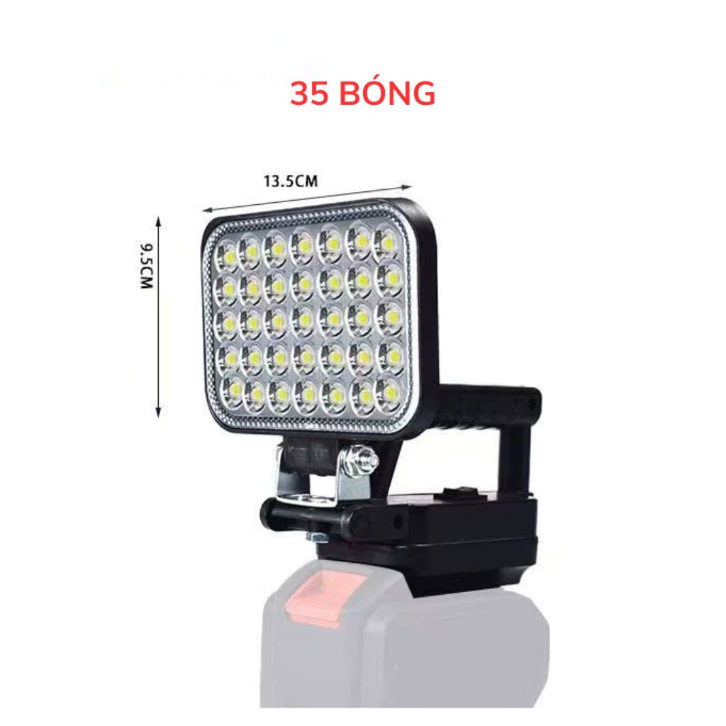 Đèn LED Dùng Pin 35 - 55 Bóng Chân Pin Makita, Đèn Pin Sạc 4 Inch Chân Thông Dụng Sử Dụng Làm Việc Ban Đêm, Cắm Trại ĐÈN PHA LED ️ Đèn dùng với pin máy công cụ chân Makita phổ thông 4cm hoặc các loại pin tàu . ️Đèn dùng với pin máy khoan , máy mài góc, máy siết bulong, máy cắt dùng pin trên thị trường. Thời gian chiếu sáng liên tục với ánh sáng mạnh nhất có thể lên tới 10h. Có thể gập và xoay chỉnh góc tiện lợi ️ Có công tắc Bật/Tắt thuận tiện sử dụng - Loại 35 bóng: + Kích thước: 113.5mm x 136mm