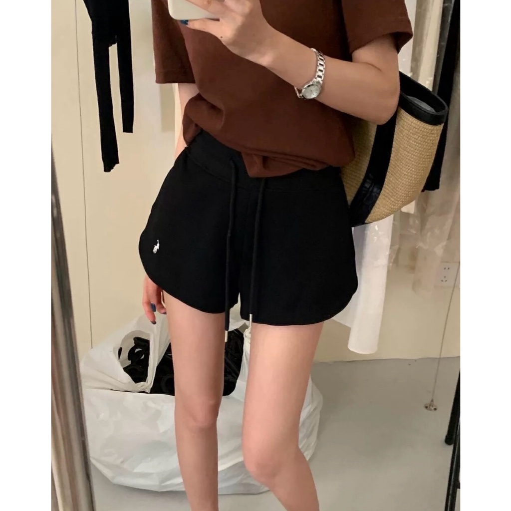 Quần short cạp cao nam nữ ,quần đùi thêu logo ngựa chất cotton dày dặn thoáng mát kiểu dáng thể thao ,năng động