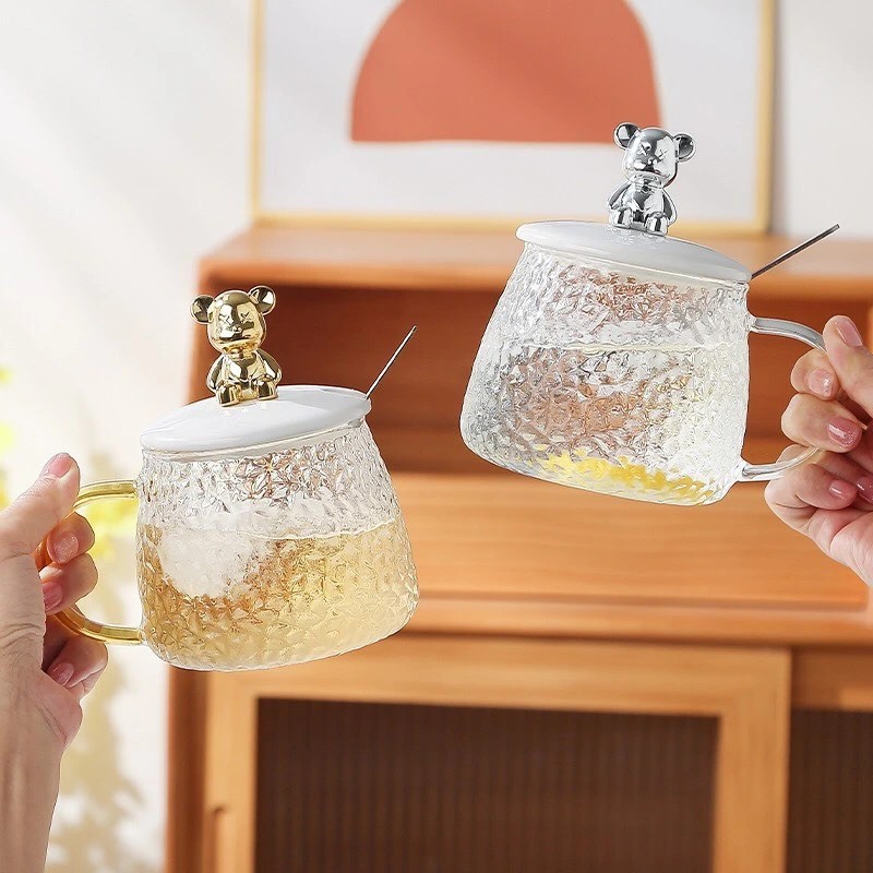 Cốc Thủy Tinh Chịu Nhiệt Cho Gia Đình, Ly Cà Phê Có Nắp Hình Gấu Và Ống Hút Phong Cách Bắc Âu